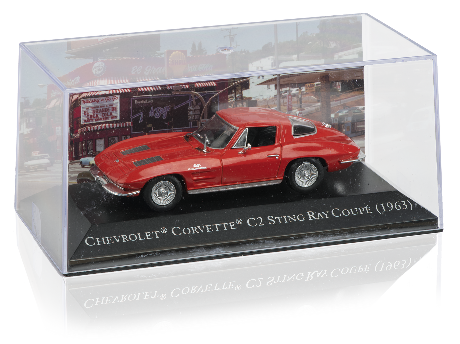 - Each model comes with a clear presentation case, including a display stand with information identifying each car and a background diorama.
