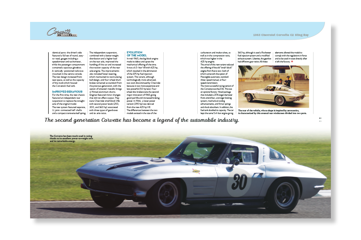 All about the featured car, telling its story, giving technical specifications and describing its evolution. All illustrated with superb photos